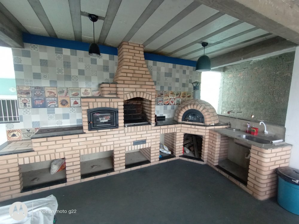 Área gourmet com churrasqueira, forno de pizza e fogão a lenha, com salão amplo para festas, 1 banheiro.
