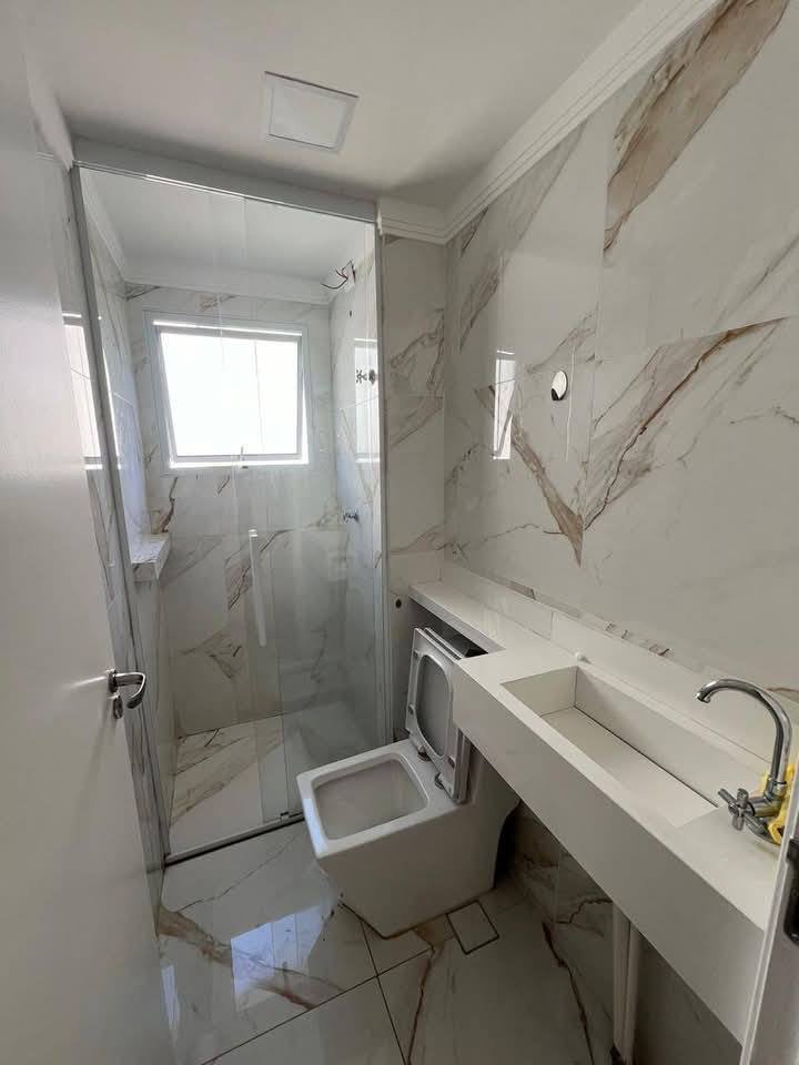 2 dormitórios, sala com varanda, cozinha com área de serviço integrada, banheiro e 1 vaga de garagem.