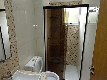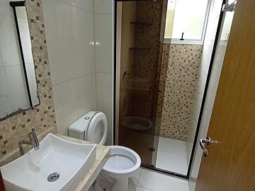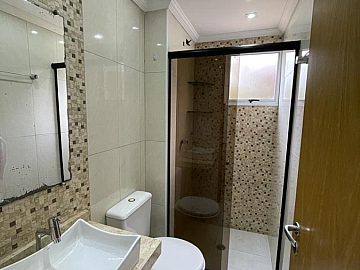 Banheiro com box e móveis planejados
